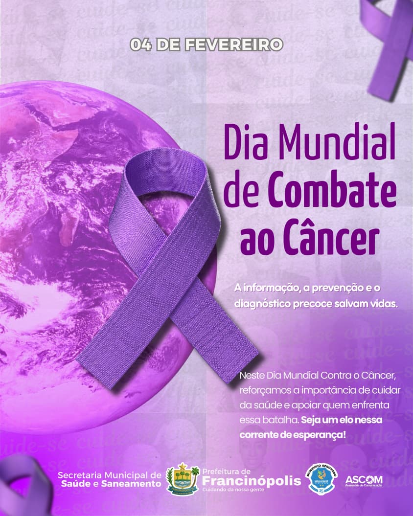 Prefeitura de Francinópolis reforça a importância da prevenção no Dia Mundial de Combate ao Câncer -