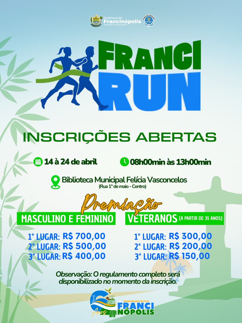 Prefeitura de Francinópolis abre inscrições para o Franci Run em comemoração aos 64 anos de emancipação política -