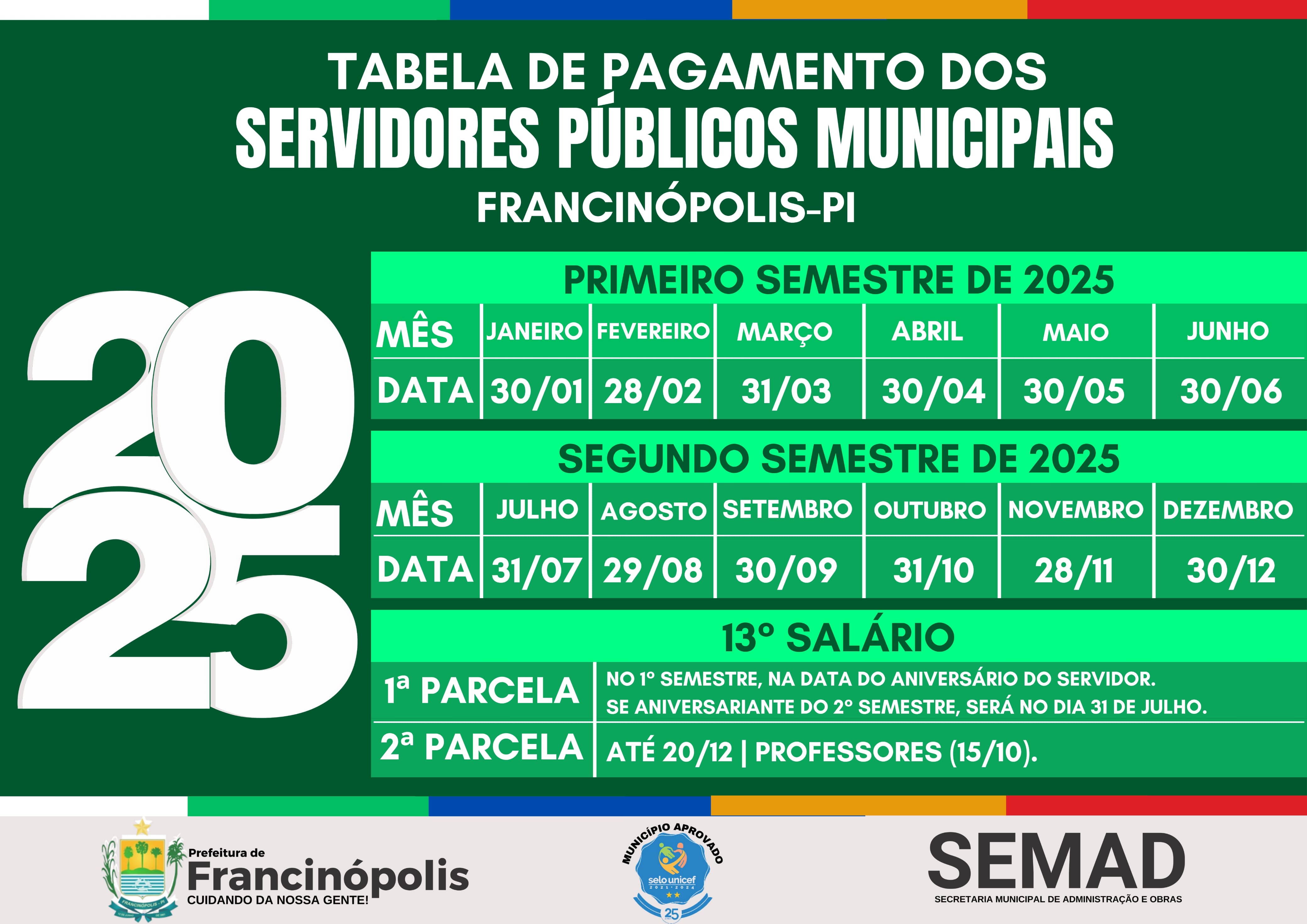 Prefeitura de Francinópolis divulga tabela de pagamento dos servidores municipais em 2025