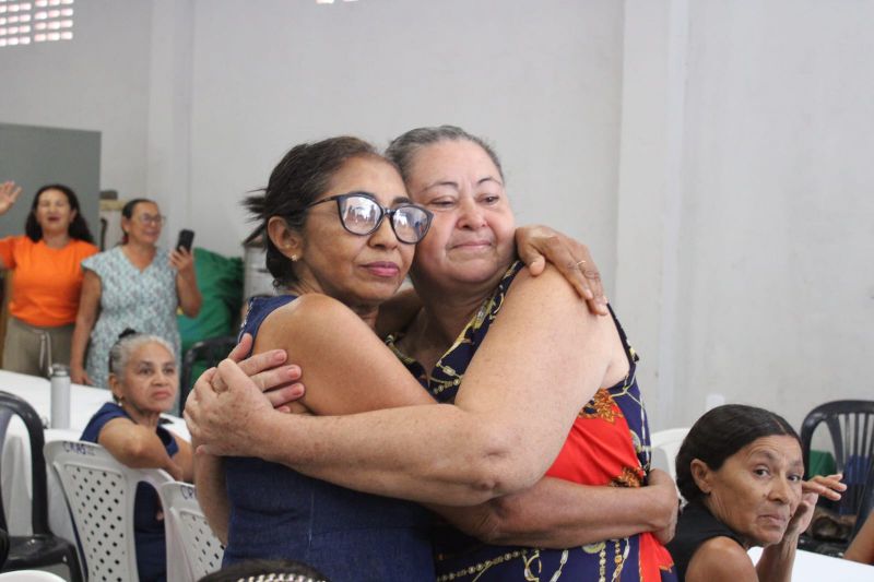 Um dos momentos mais marcantes foi o canto dos parabéns em homenagem a todos os idosos, seguido de abraços e gestos de carinho, fortalecendo ainda mais os laços de amizade e afeto entre eles.