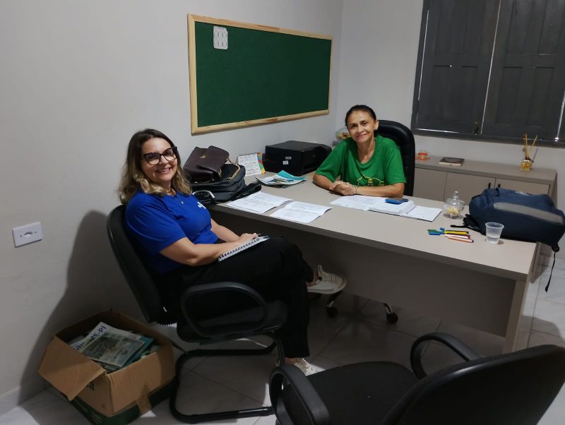 Durante a visita, Irisletiere esteve reunida com a secretária municipal de Educação, Eliane Morais, em um momento de diálogo e alinhamento de ações voltadas para o fortalecimento da educação no município.