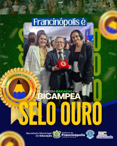O município de Francinópolis celebra mais uma importante conquista na área da educação. Nesta segunda-feira (23), em cerimônia realizada em Brasília, Francinópolis foi novamente reconhecida com o Selo Nacional Compromisso com a Alfabetização - categoria Ouro, consolidando-se como referência ao alcançar o bicampeonato na premiação.