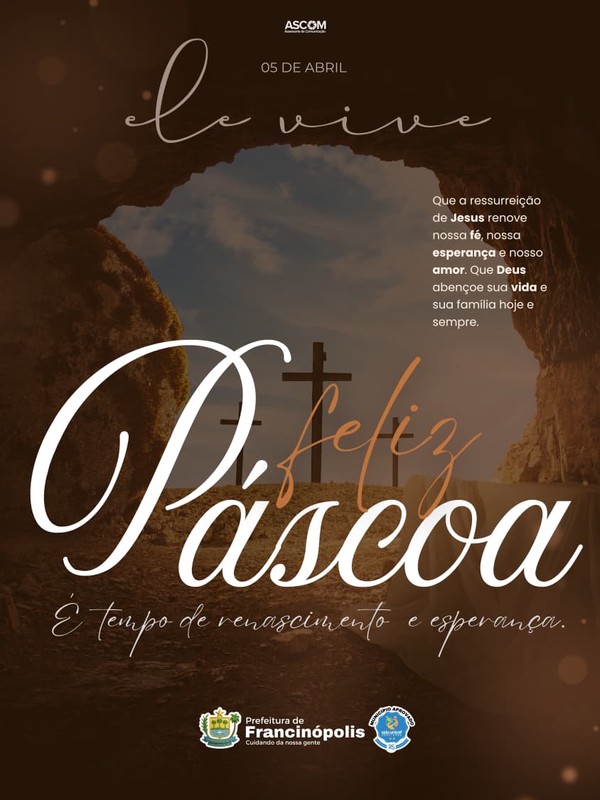 A gestão municipal, por meio da administração “Cuidando da Nossa Gente”, reafirma seu respeito às manifestações de fé e seu compromisso com o bem-estar da população. Neste tempo especial, deseja que cada família francinopolitana vivencie esses momentos com paz, união e esperança renovada.