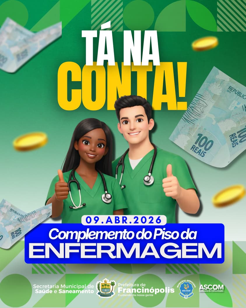 A Prefeitura de Francinópolis realizou, nesta quarta-feira (09), o pagamento do complemento do piso da enfermagem, reafirmando o compromisso com a valorização dos profissionais da saúde do município.