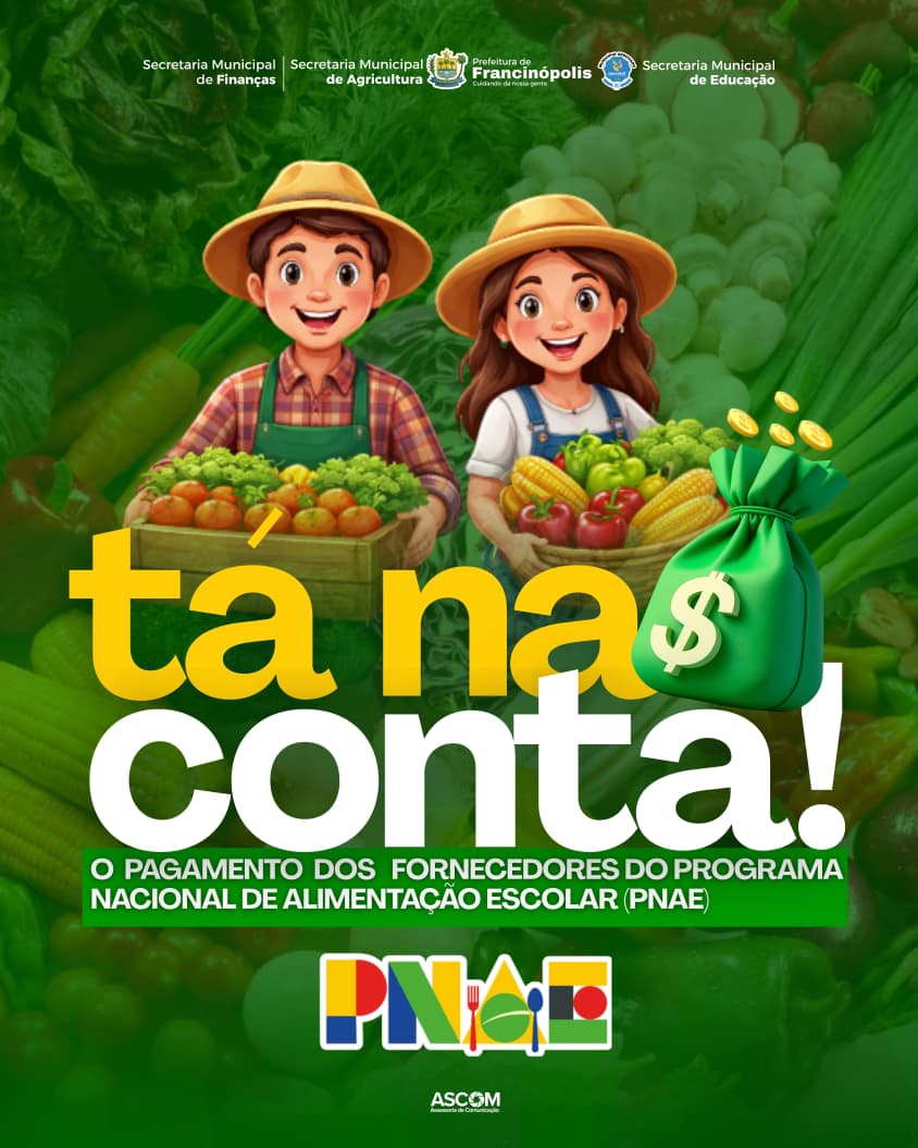 A Prefeitura de Francinópolis realizou o pagamento dos fornecedores vinculados ao Programa Nacional de Alimentação Escolar (PNAE), reforçando o compromisso com a valorização da agricultura local e a garantia de uma alimentação de qualidade para os estudantes da rede municipal de ensino.