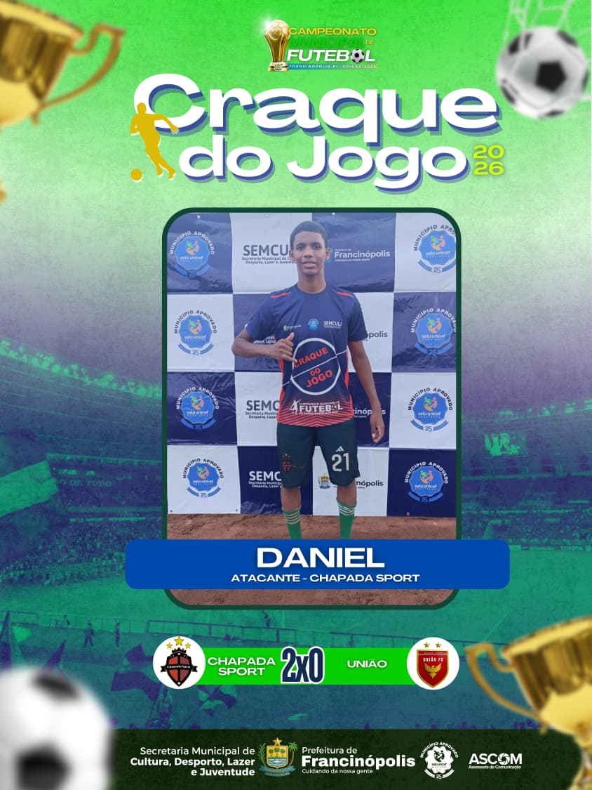Em campo, o Chapada Sport garantiu sua classificação ao vencer a equipe do União pelo placar de 2 a 0, em uma partida marcada por organização tática e bom desempenho coletivo. Com o resultado, a equipe assegurou sua vaga entre os quatro melhores times da competição.