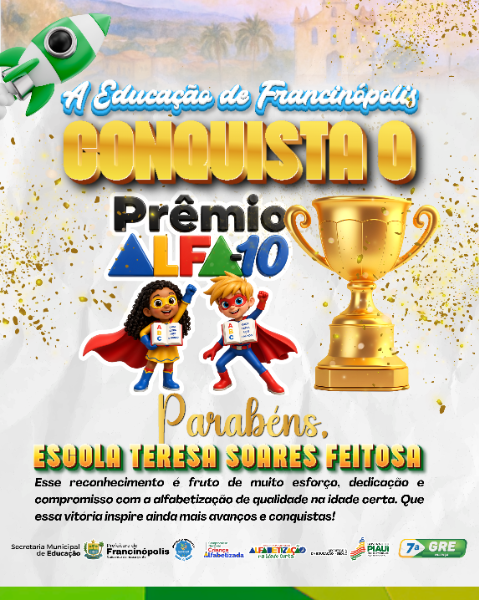 A educação do município de Francinópolis segue avançando e conquistando importantes reconhecimentos. Desta vez, a rede municipal celebra a conquista do Prêmio Alfa-10, um resultado que evidencia o compromisso com a qualidade do ensino e o desenvolvimento dos estudantes.