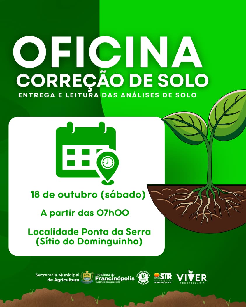 Oficina de Correção de Solo será realizada na localidade Ponta da Serra -